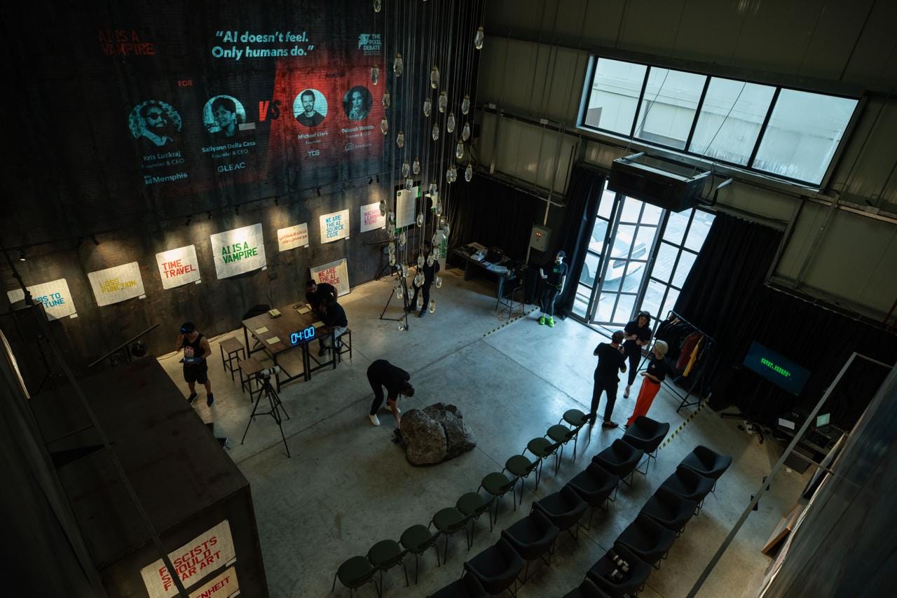 There I was, standing on stage, a question hanging in the air that felt bigger than me, bigger than the night itself: Humanity versus AI.